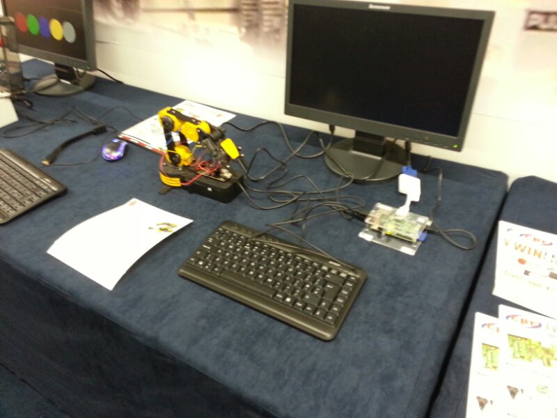 Already on the way to being setup CPC’s stand offered a few Pi based goodies to look at and purchase. The displays included a minecraft Pi, a Pi controlled robot arm and Lego, or the Simon based game.