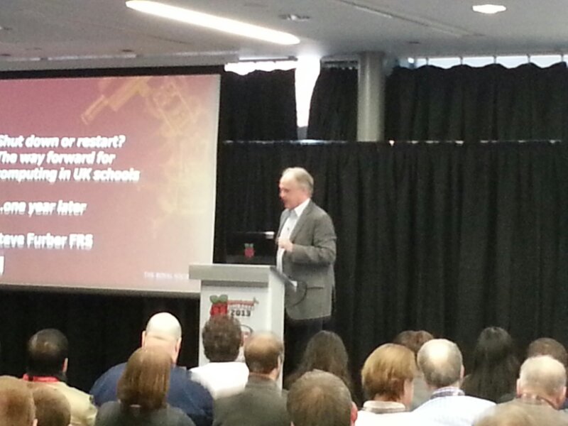 With the room pretty much packed, Alan opened the event with his usual teacher style (hands up, no calling out, 3 2 1 silence etc… are you chewing) introducing the newly built community surrounding the Pi and its Jams. Handing over to Steve Furber, the designer of the Legendary BBC Micro, for the keynote speech regarding the state of computing within education.